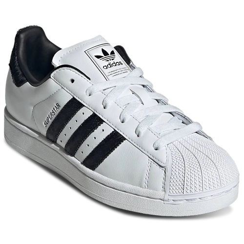 Versione da donna della Superstar II in colorazione nero/bianco, con tomaia in pelle liscia e caratteristica punta a conchiglia. Progettata per l’uso quotidiano, combina materiali robusti e calzata confortevole.