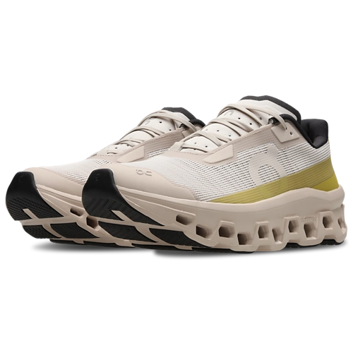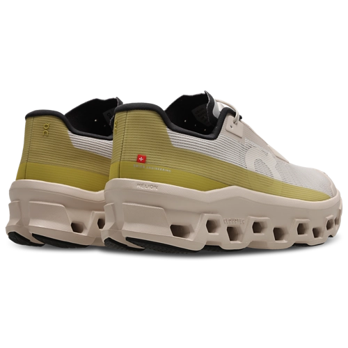 On Cloudmonster è una scarpa progettata per un comfort ammortizzato e transizioni fluide. L’insieme di CloudTec e schiuma Helion favorisce un appoggio morbido e reattivo, mentre la geometria rocker accompagna il passo. La tomaia in mesh leggero migliora la traspirabilità e la piastra Speedboard integrata contribuisce a stabilità e risposta.